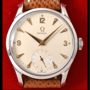 ダイヤルパティナが美しい、54年製のOMEGA、オートマチックです。 アップライト、ブレゲインデックスの2飛びダイヤルは6時位置のダイヤル中央まで掛かる、大型セコンドを備えた躍動感溢れる50年代特有のデザイン。オリジナル […]