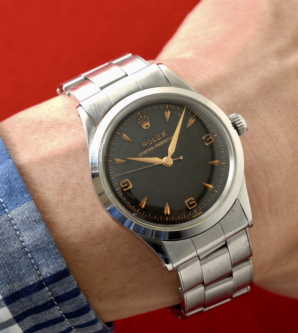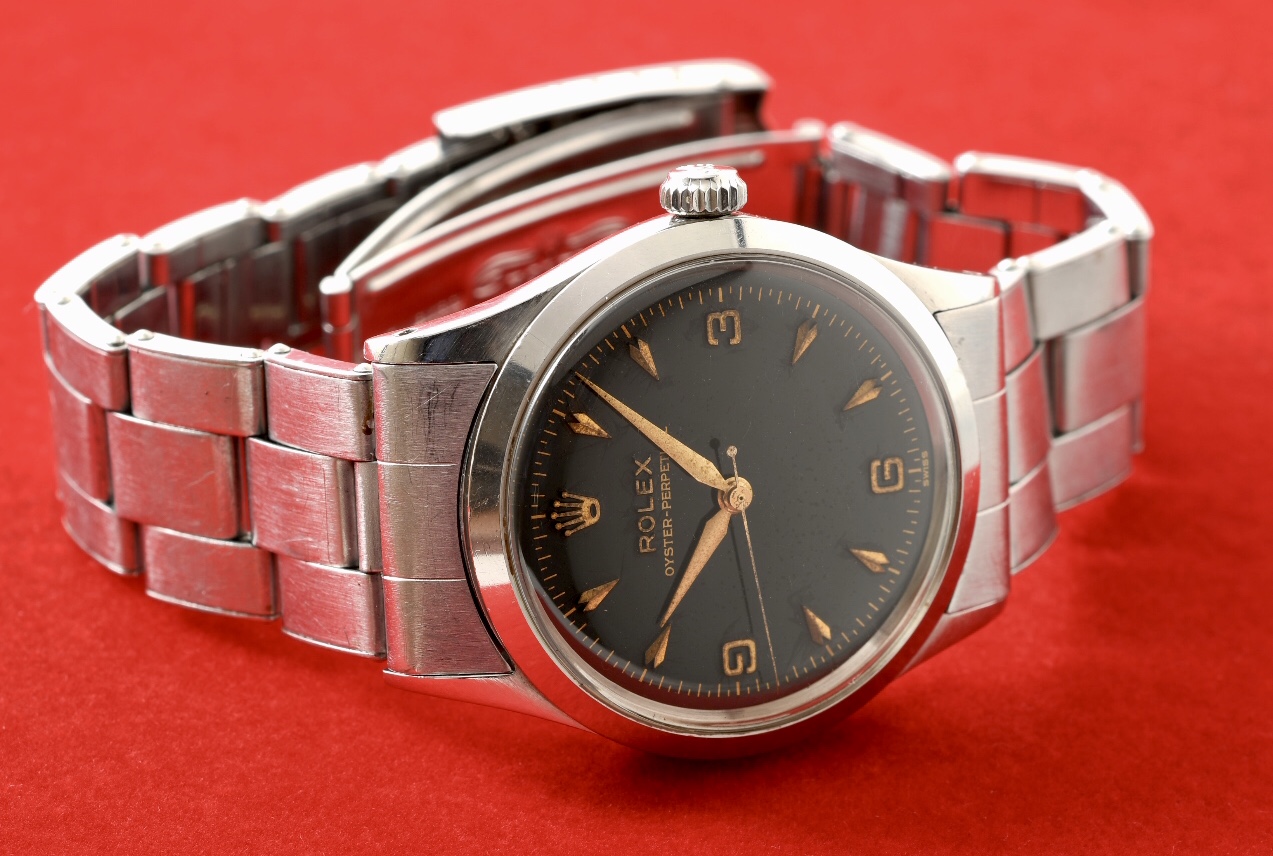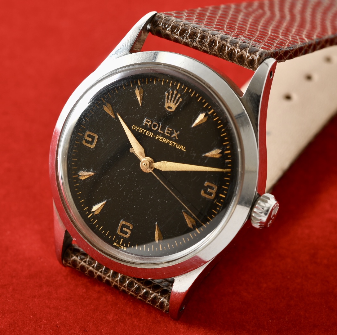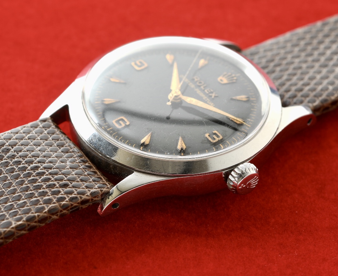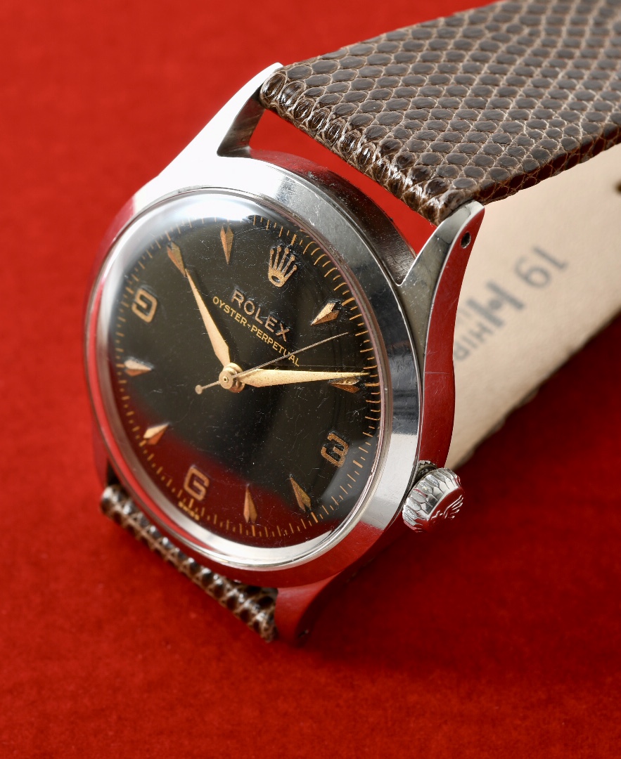 1956年製造のロレックスブラックミラー、オイスターパーペチュアル。