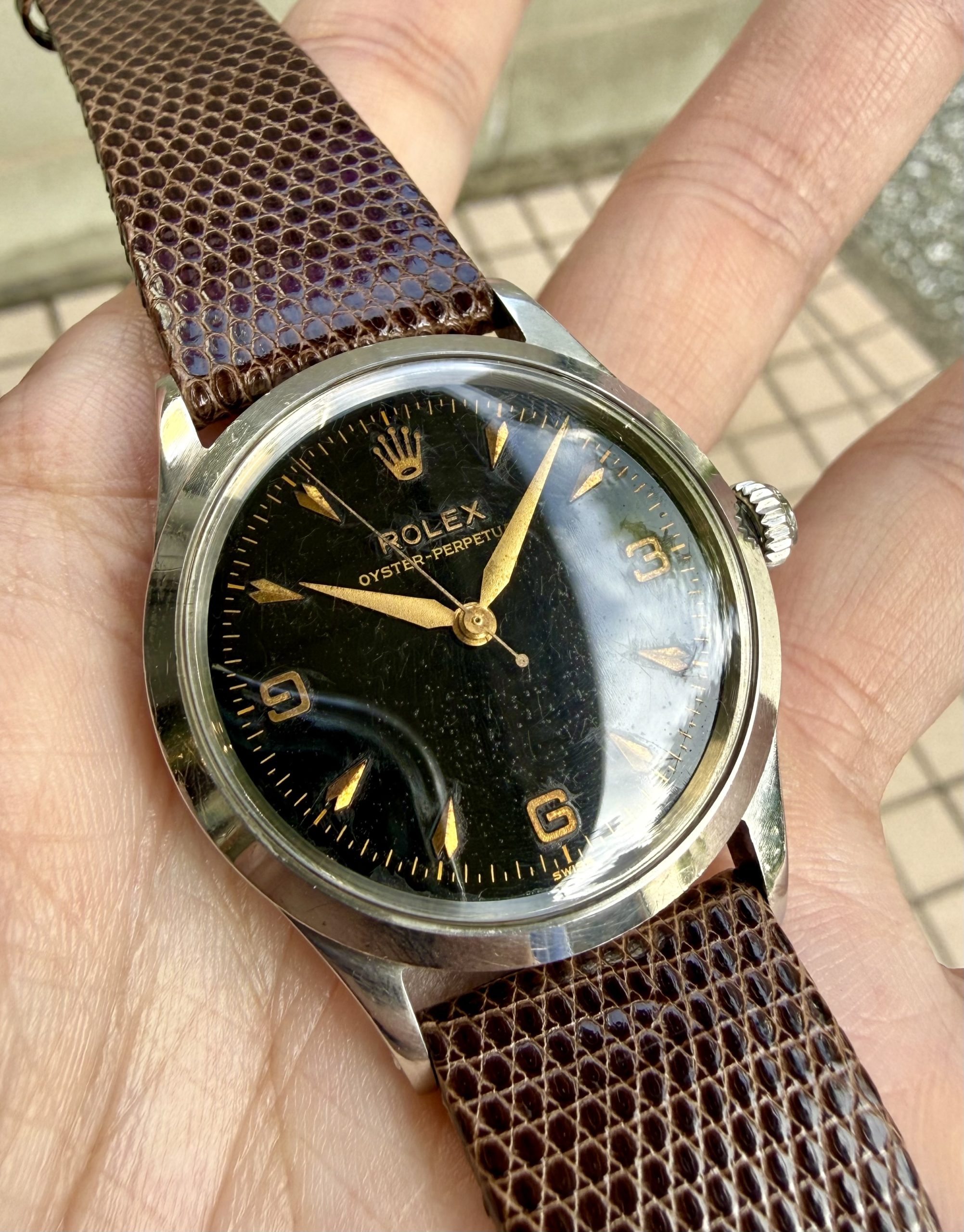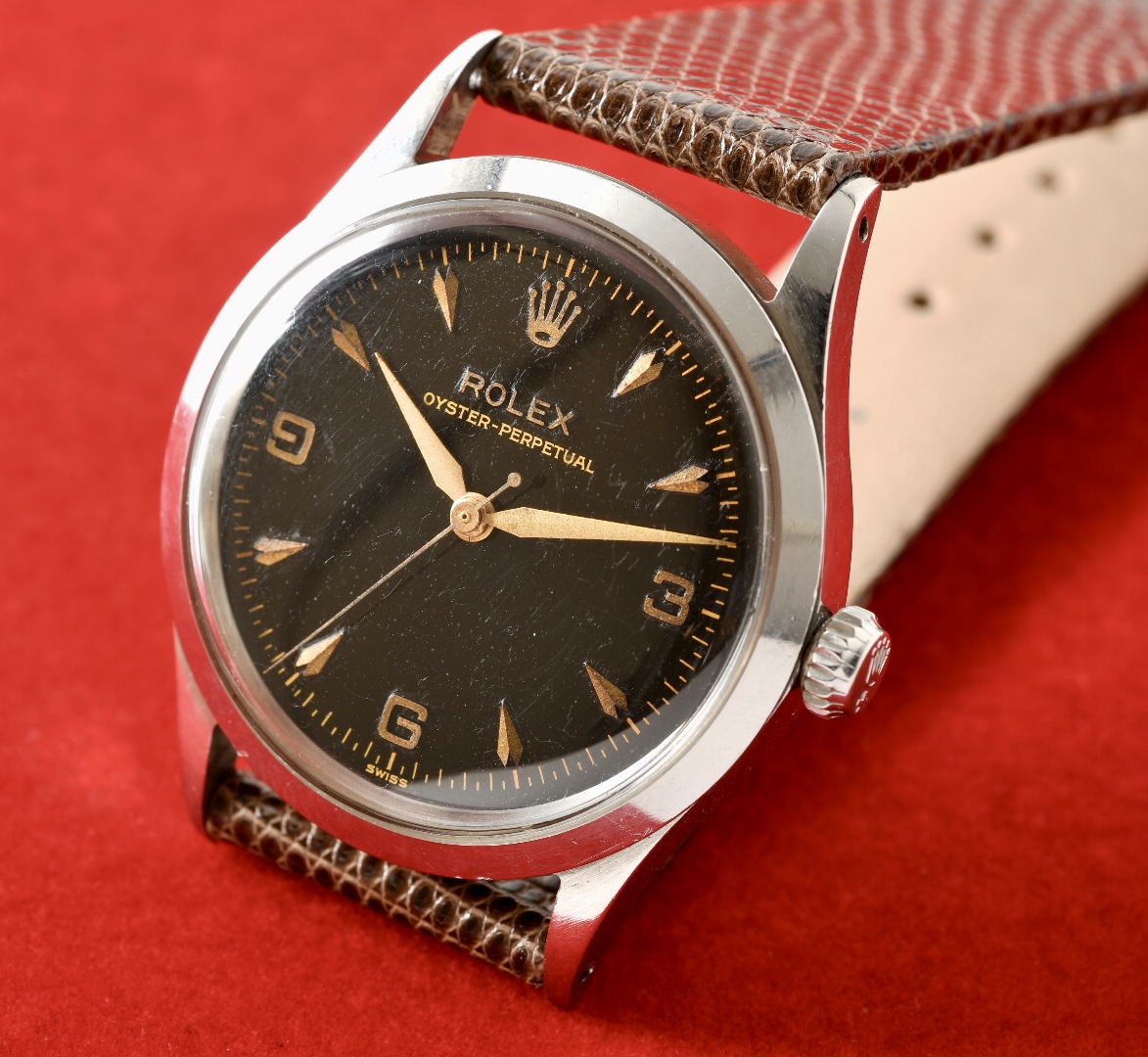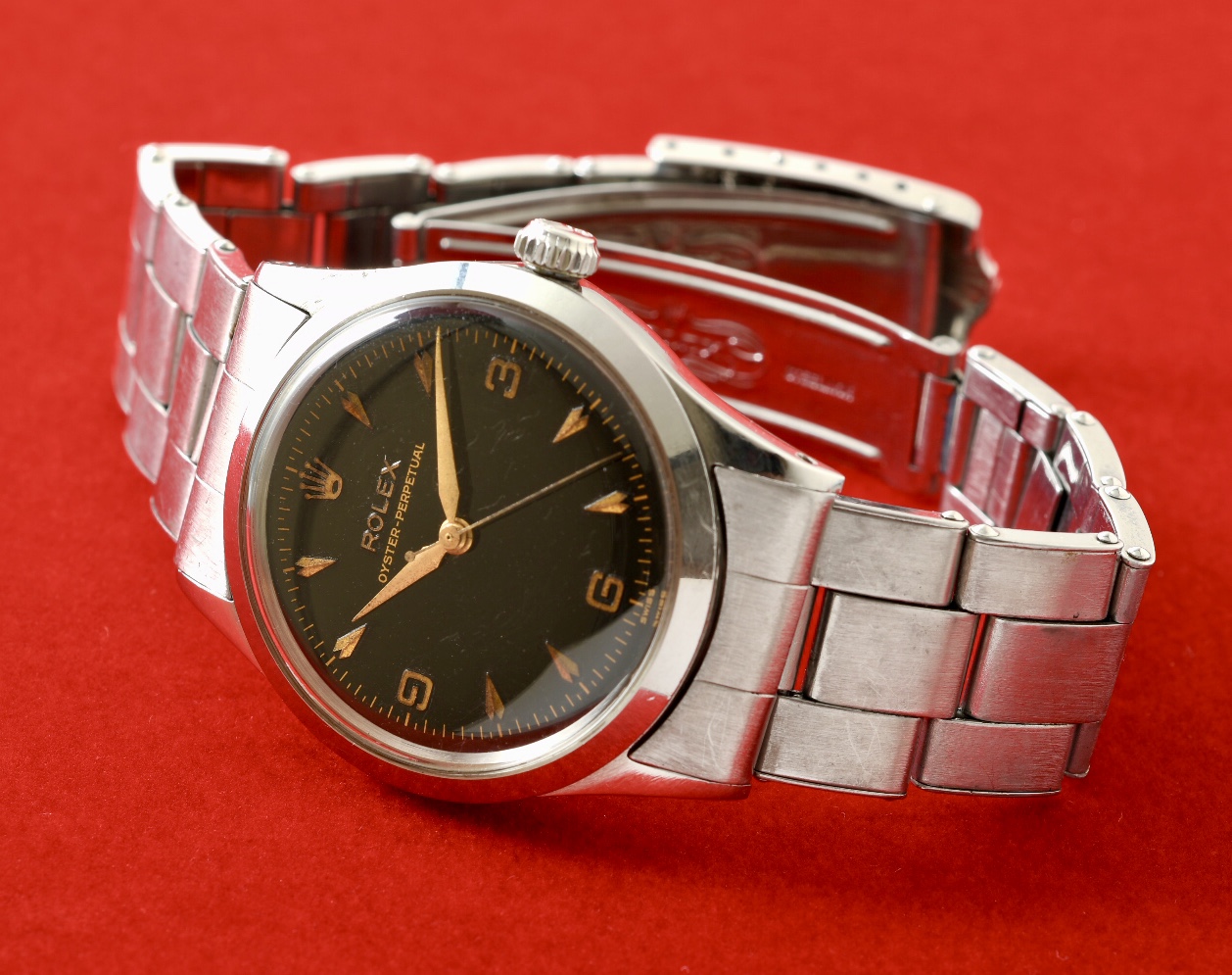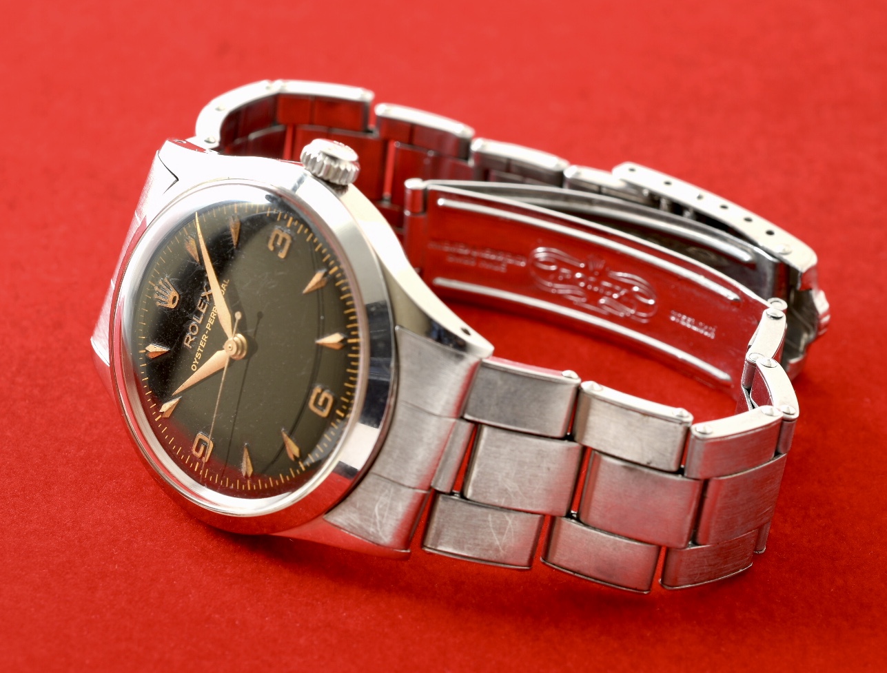 1956年製造のロレックスブラックミラー、オイスターパーペチュアル。