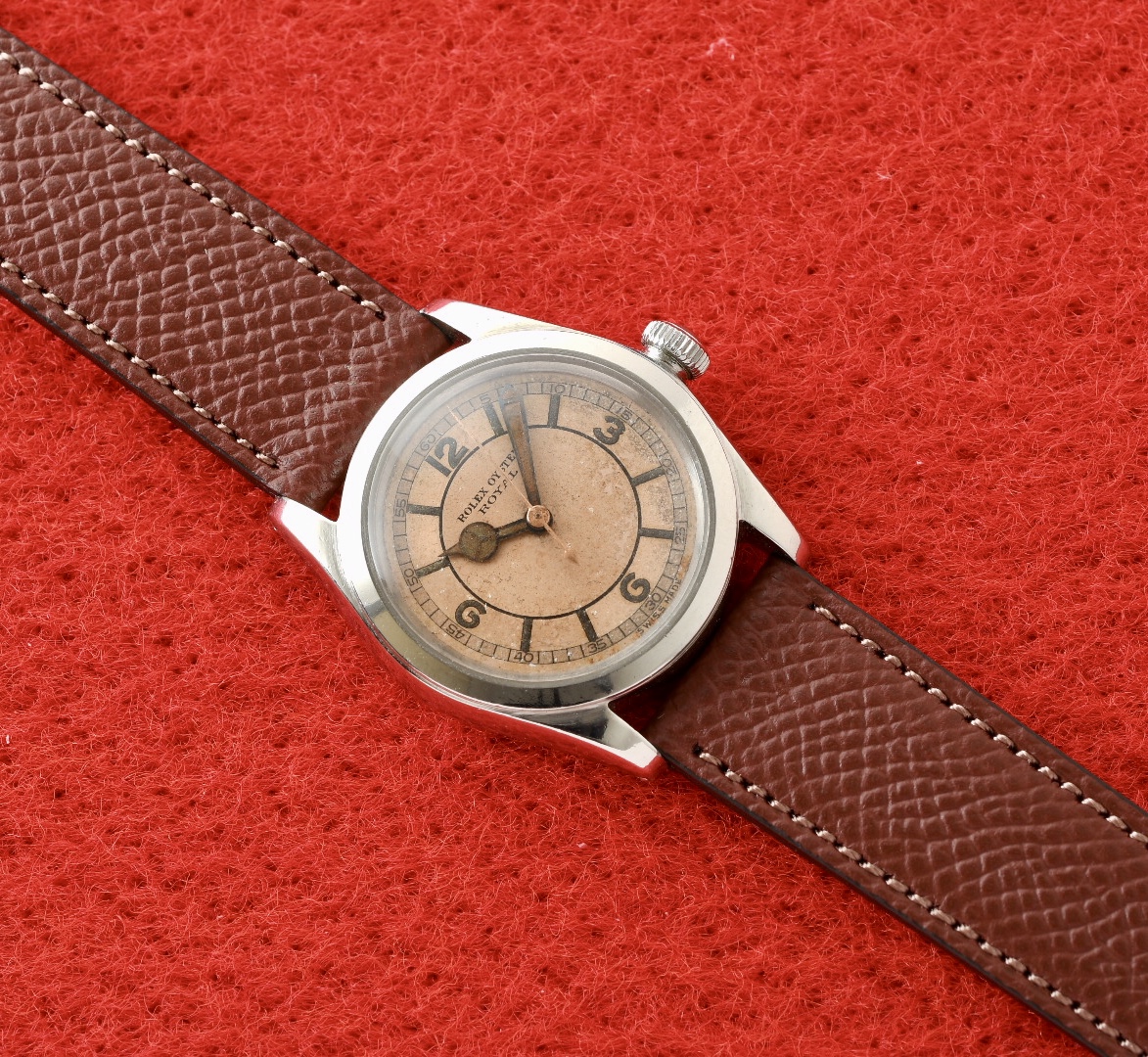 風防、ボディ、ダイヤルに、焼け、使用感、キズなどあります。お買上げ日より180日間の内部保証付きです。(リューズ、外装は保証外。)