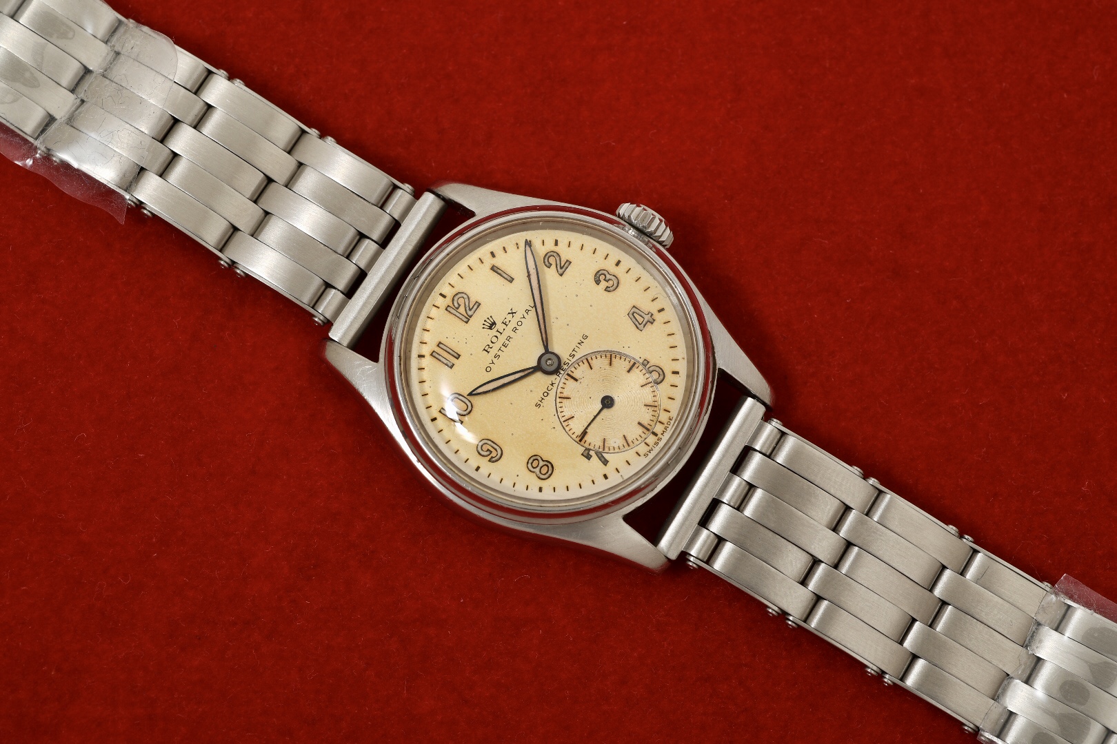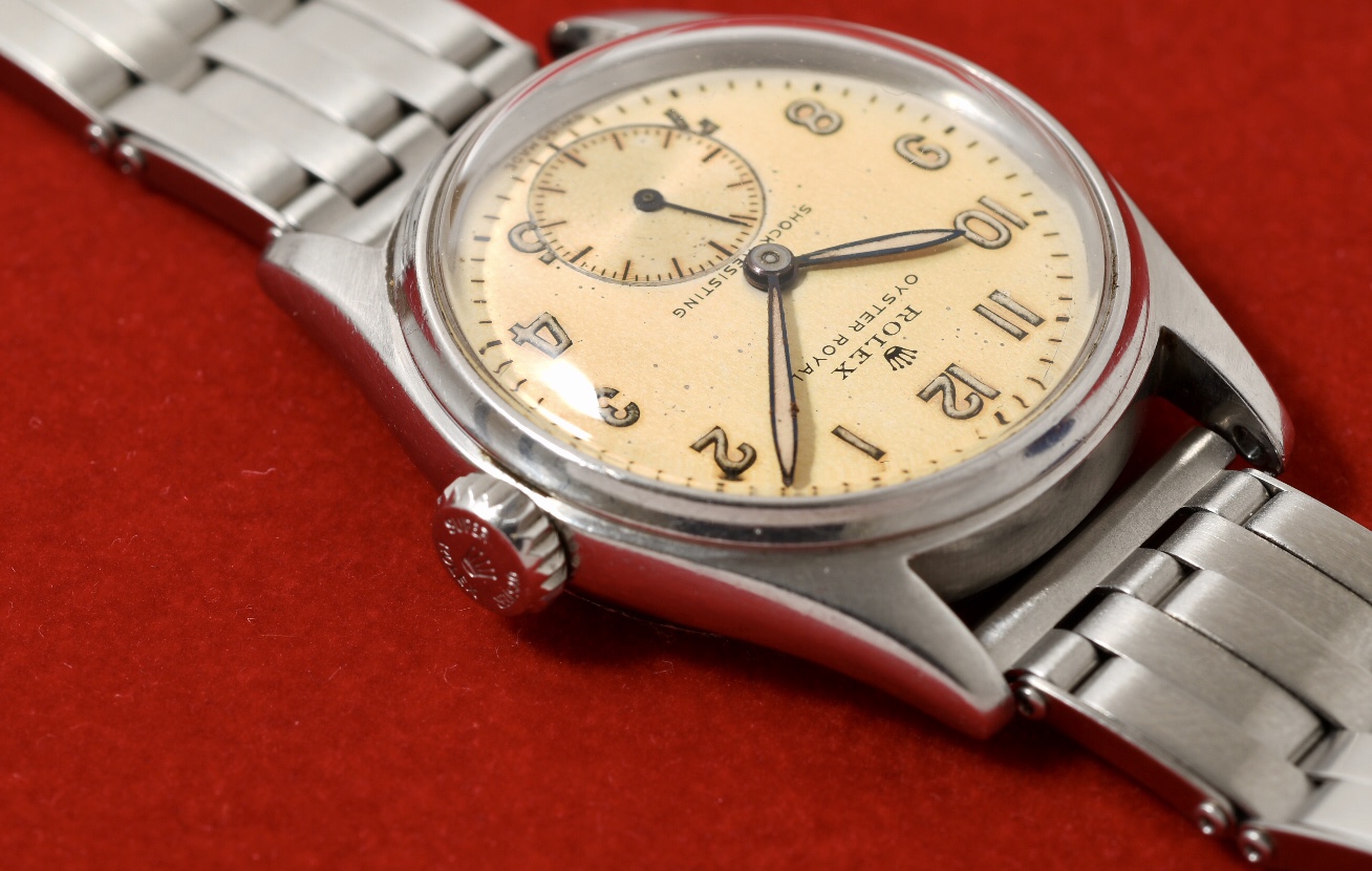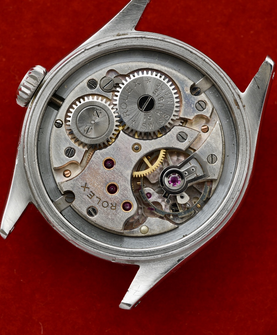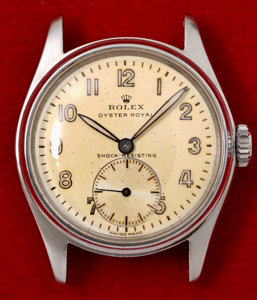 50年代に入り、スモールセコンド搭載のフルアラビアインデックスは極端に少数になります。初期だけの大変希少な文字盤です。
