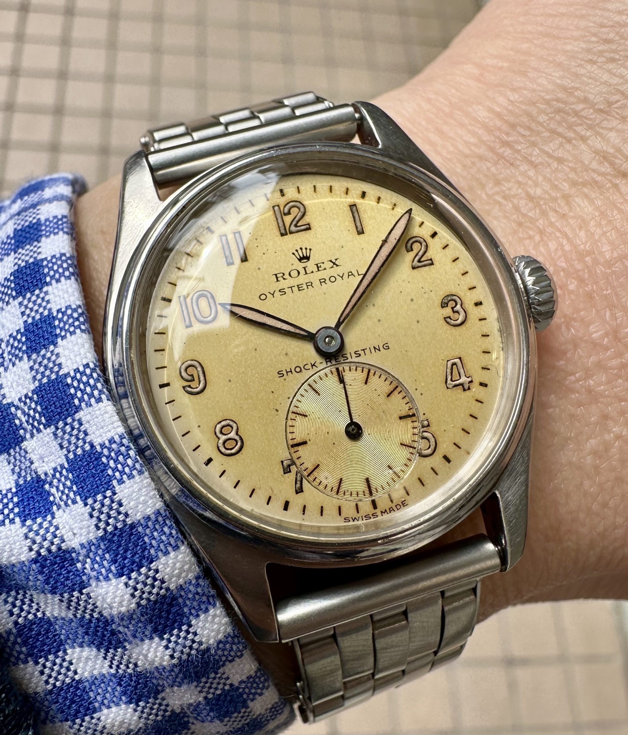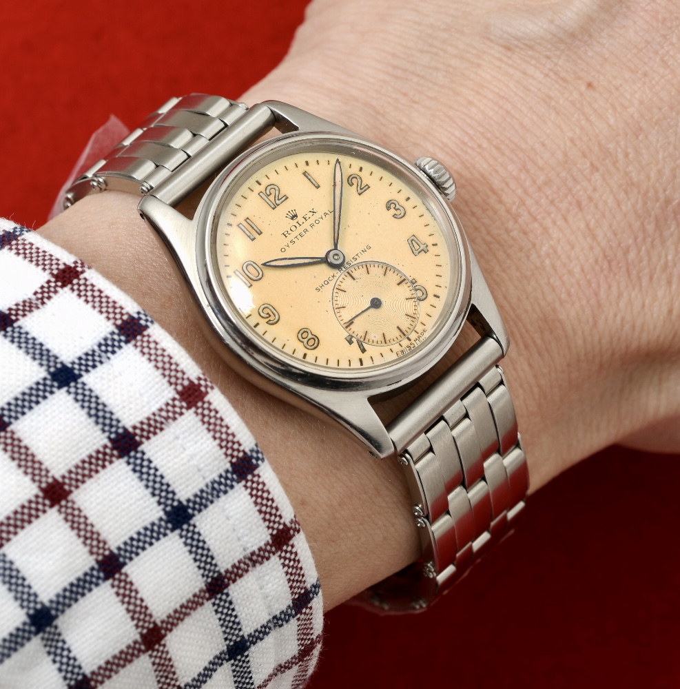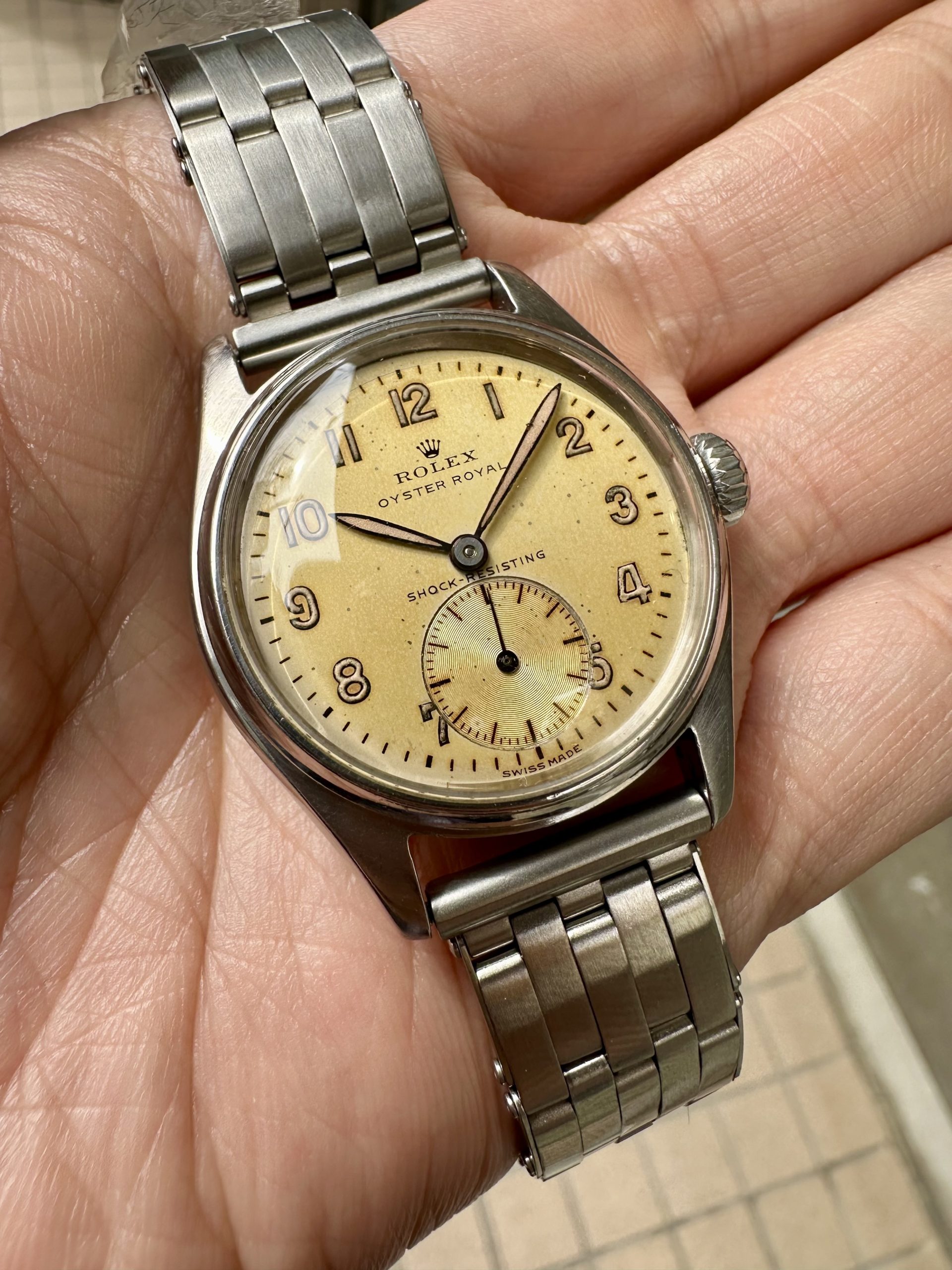 50年代に入り、スモールセコンド搭載のフルアラビアインデックスは極端に少数になります。初期だけの大変希少な文字盤です。